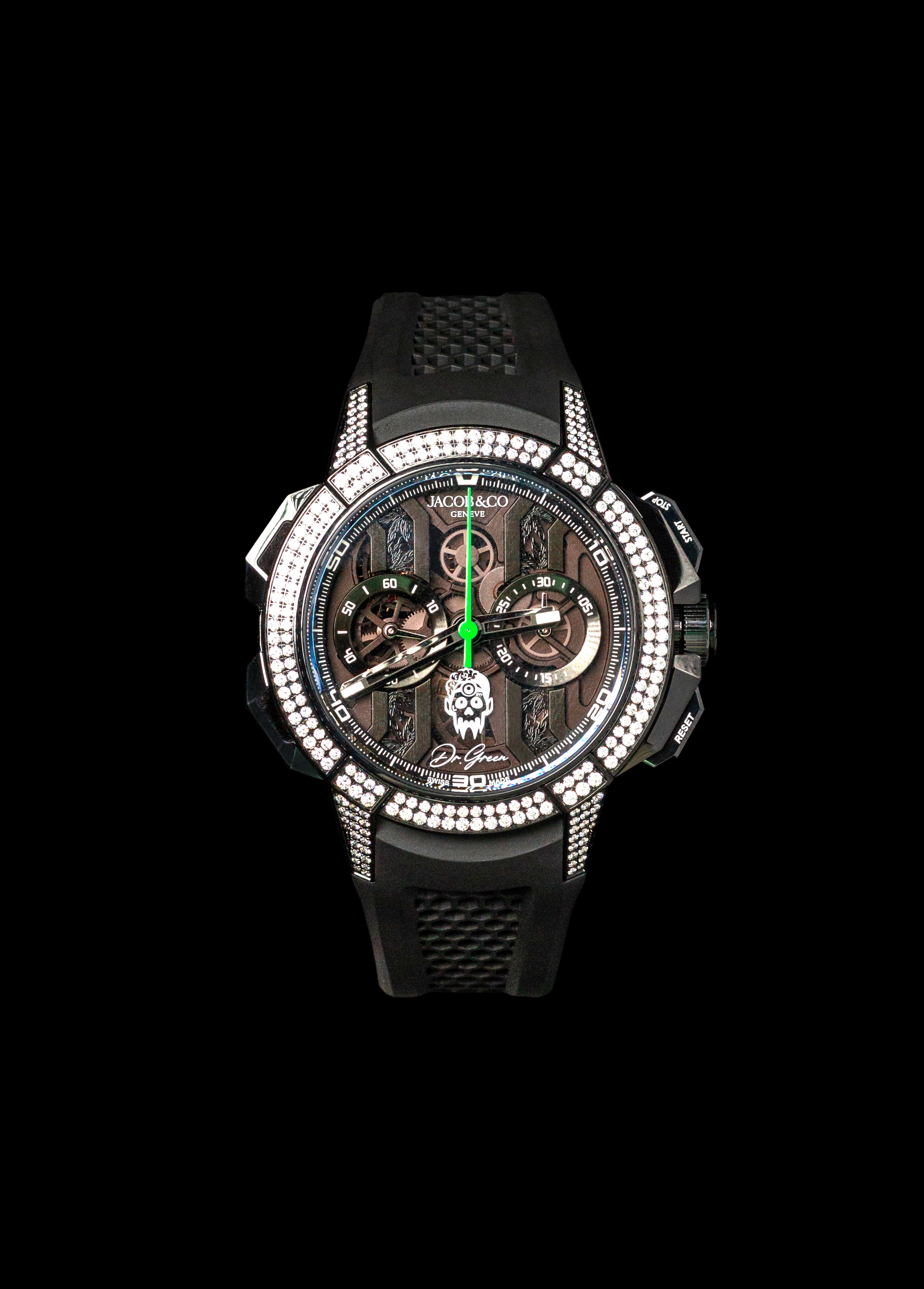 We produced detailed, high-impact content for Jacob & Co., focusing on the craftsmanship, materials and precision behind their timepieces. The shoot captured intricate close-ups and considered compositions that highlighted both design and engineering, while also showcasing the exclusive collaboration with Dr Green. The result was refined visual storytelling that elevated the partnership and positioned the watches as both technical masterpieces and collector-led luxury pieces.